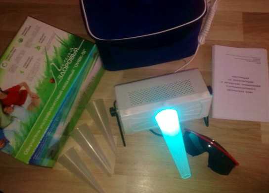 В обязательном порядке в комплекте лампы должна быть запасная трубка и защитные очки, а у настольного ее варианта еще и различные насадки для органов слуха, обоняния и горла.